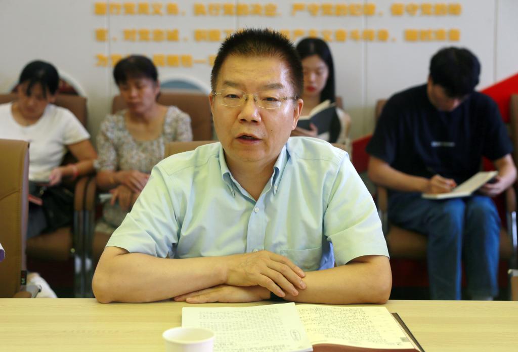 他指出,习近平总书记“七一”重要讲话高屋建瓴、思想深邃、内涵丰富、振奋人心,具有很强的政治性、思想性、理论性,是一篇马克思主义纲领性文献,是坚持和发展中国特色社会主义的行动指南,让我们倍感振奋,备受鼓舞。习近平总书记用1个宣告,庄严宣告实现了第一个百年奋斗目标、全面建成了小康社会;以1个主题、4个阶段,全面回顾了我党团结带领中国人民开辟的伟大道路、创造的伟大事业、取得的伟大成就;以4个层面、32个字,鲜明提出了坚持真理、坚守理想,践行初心、担当使命,不怕牺牲、英勇斗争,对党忠诚、不负人民的伟大建党精神;用9个必须,系统阐述了以史为鉴、开创未来,在新的百年勇立潮头的指导思想;用1个号召,向全体党员发出了为党和人民争取更大光荣的伟大号召。