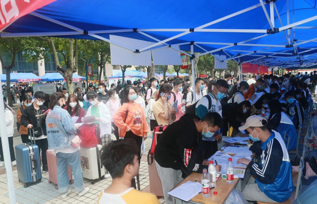 迎新现场人头攒动 秩序井然