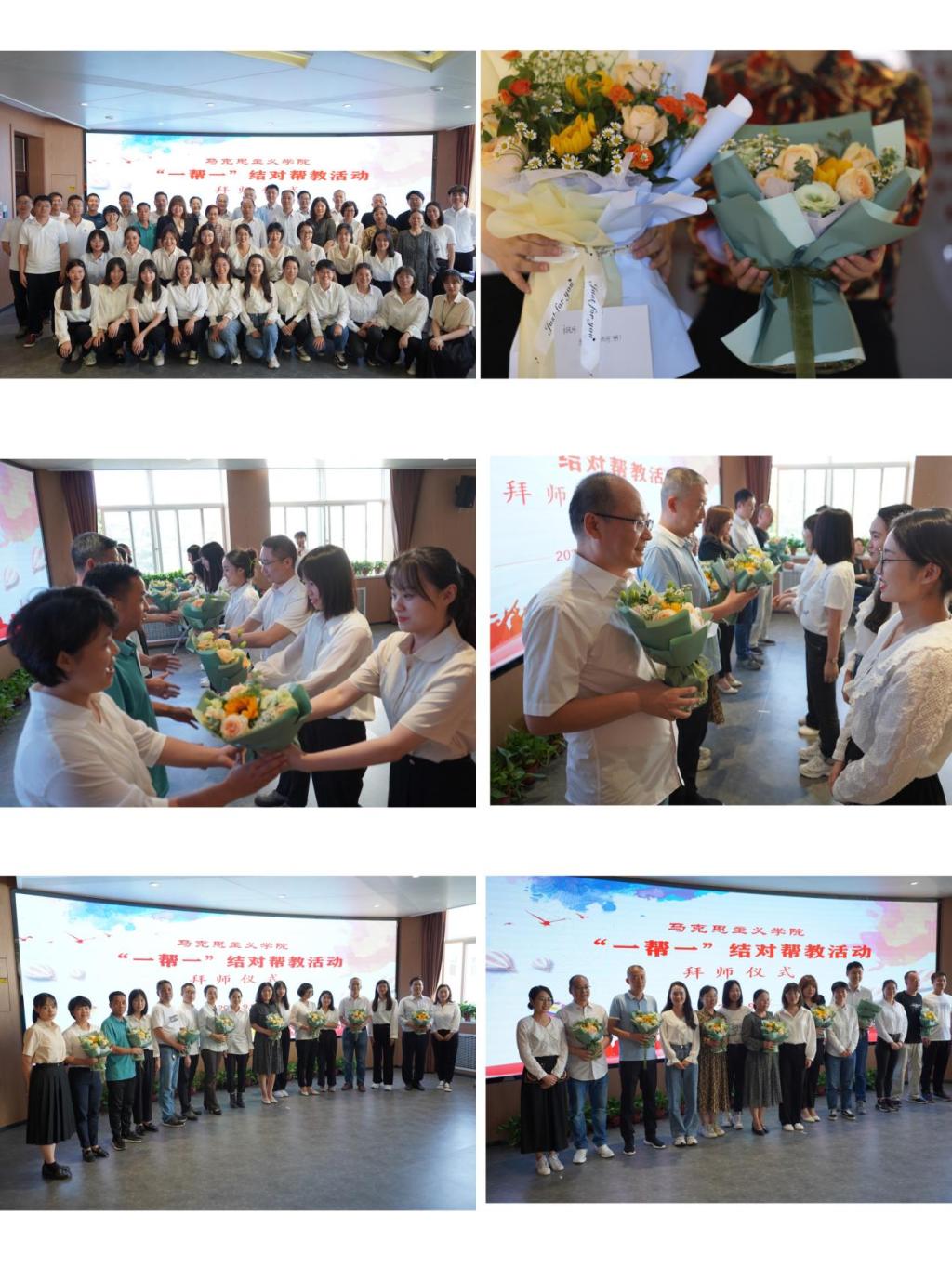 敬师篇:举行拜师礼仪式,近两年新进的26名青年教师依次向各自的指导教师献花并行鞠躬礼,指导教师向青年教师回赠书籍并合影留念。与会领导为全体指导教师颁发了帮教活动聘书。