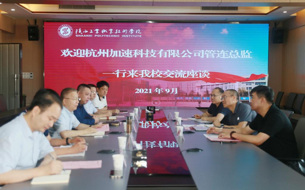 9月14日,杭州加速科技有限公司产品与售前总监管连一行3人来我院调研并商谈校企合作事宜。学院党委书记惠朝阳、副院长段峻,校企合作处、电气工程学院、信息工程学院相关人员参加了会议,会议在崇文楼九楼第一会议室举行。