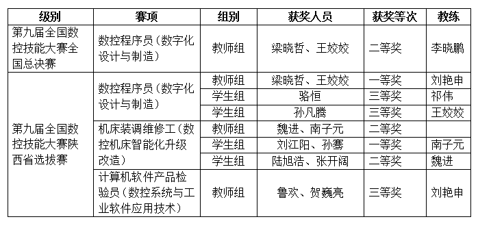 近日,由人力资源社会保障部、教育部、科技部、全国总工会、机械工业联合会等五部委联合共同举办的第九届全国数控技能大赛下发了获奖证书,我校航空工程学院教师梁晓哲、王姣姣获全国总决赛团体二等奖1项。航空工程学院师生在陕西省赛区中获一等奖2项,二等奖2项,三等奖2项,我校获得全国优秀组织奖、陕西省突出贡献单位奖。