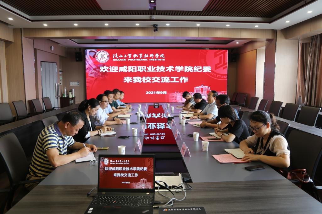 康强对第五剑盈书记一行表示热烈欢迎,并介绍了我校基本办学情况、纪检机构改革和纪检工作开展情况,希望双方加强交流,互促发展。第五剑盈书记对我校热情接待表示感谢,对我校近年来取得的办学成绩表示赞赏,并介绍了咸阳职业技术学院纪检机构改革以及纪检工作开展情况。会上,双方还围绕高校纪检机构改革、纪检制度建设、线索处置与案件办理、政治监督与日常监督、廉政文化建设、“三转”与“三化”工作开展等方面问题进行了交流和探讨。