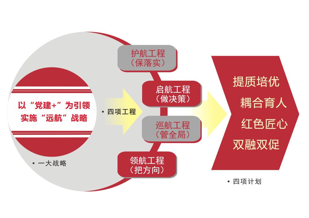 学院党委始终坚持社会主义办学方向,以“立德树人”为根本任务,深化“三全育人”改革,按照“一流党建引领创新发展、一流业绩助力追赶超越”的思路,把党建优势全面转化为推动改革发展的意志力、竞争力和向心力,以“党建+”为引领,实施“远航”战略,施行“提质培优 耦合育人 红色匠心 双融双促”四项计划,致力于培养“德智体美劳”全面发展的技术技能人才。