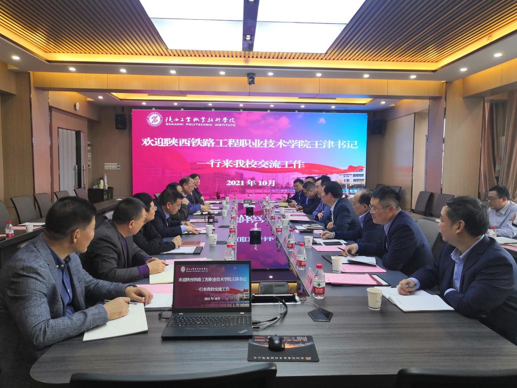 王津书记对我校的热情接待表示感谢,对我校近年来取得的成绩表示赞赏,并简要介绍了陕西铁路工程职业技术学院新校区二期建设等情况。