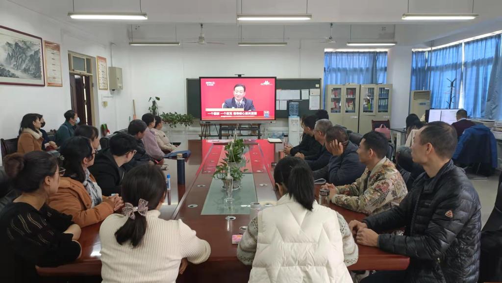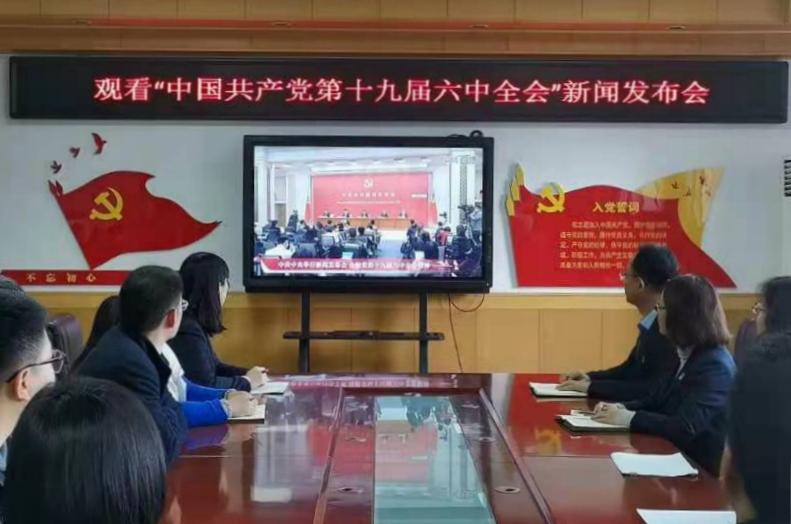 财经与旅游学院党总支组织党员干部、学生代表60余人在格物楼408会议室集中收看党的十九届六中全会精神新闻发布会直播。发布会后,师生们反响热烈,纷纷表示,将认真学习此次全会精神,全面贯彻习近平新时代中国特色社会主义思想,大力弘扬伟大建党精神,结合党史学习教育,深刻学习党的历史,领悟党的精神,进一步坚定永跟党走的信念,把学习宣传、贯彻落实十九届六中全会精神作为当前重要的政治任务,认真落实到工作与学习的具体实践中。为实现第二个百年奋斗目标、实现中华民族伟大复兴的中国梦而不懈奋斗!