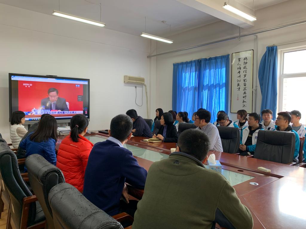 汽车工程学院充分利用会议室、学生工作办公室等场所,组织师生观看党的十九届六中全会新闻发布会,观看活动师生参与度高、反馈良好。