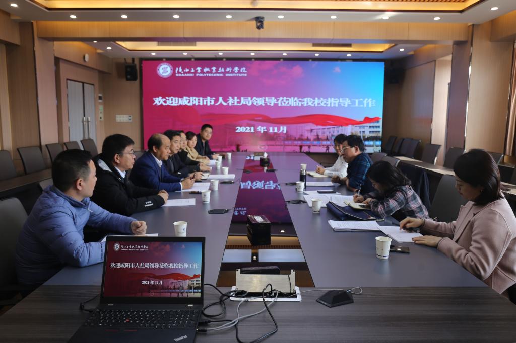 11月10日下午,咸阳市人社局技能提升办公室主任魏荣社、罗晓彤、冯小利、韩敏等一行4人莅临我校进行技能大师工作室实地考察工作,我校副校长梅创社、人事处处长殷锋社及技能大师工作室负责人参加了会议,会议由殷锋社处长主持。