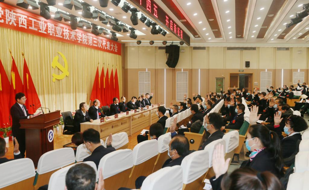 12月15日,中国共产党陕西工业职业技术学院第三次代表大会隆重开幕。来自全校的党员代表肩负广大师生员工的重托,齐聚一堂,豪情满怀,围绕“高举习近平新时代中国特色社会主义思想伟大旗帜,准确把握新时代高职教育改革发展的新要求、新任务,全面贯彻党的教育方针,紧紧围绕立德树人根本任务,以高质量党建为引领,聚焦内涵发展,聚力高质量提升,为建设中国特色、世界一流职业大学而接续奋斗”的大会主题,共商学校建设发展大计。
