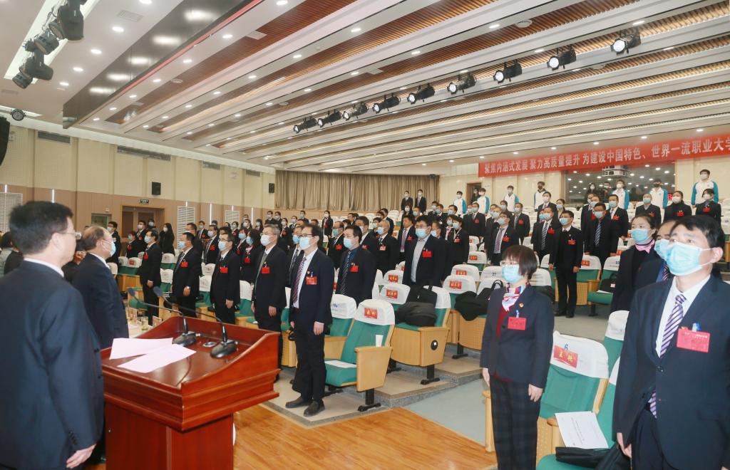报告号召,全校各级党组织和广大党员干部以胸怀世界的谋划引领发展,以敢为人先的气魄抢抓机遇,以众志成城的信念争创一流,更加紧密地团结在以习近平同志为核心的党中央周围,凝心聚力,锐意进取,深化改革,创新发展,为建设中国特色、世界一流职业大学而接续奋斗。