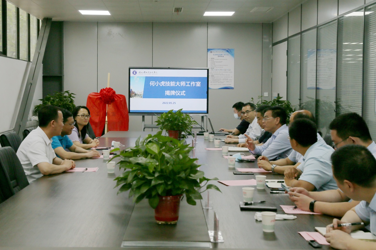 随后,刘永亮校长与何斌副总经理共同为工作室揭牌。揭牌仪式结束后,技能大师何小虎作了发言,对母校及单位的培养表达了感谢,并表示将不负学校及单位领导期望,切实发挥工作室的纽带作用,为学校的人才培养做出应有的贡献。