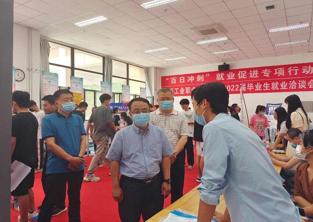5月27日在学校举办的招聘会现场,康强分别对来校招聘的西安中兴通讯股份有限公司、陕西正泰智能电器有限公司、西安荷佐里机电科技有限公司咸阳分公司、陕西长风新能源科技有限公司、陕西隆基乐叶光伏科技有限公司等五家企业表示了热烈的欢迎并进行了深入交流。康强表示,企业要加强对学生的后续培养,为学生提供良好的职业通道,争取把优秀的学生放在优质的岗位上。对现场应聘学生,康强要求同学们做好充分准备,鼓励同学们适应新形势,转变职业观念,顺利走好职场第一步。