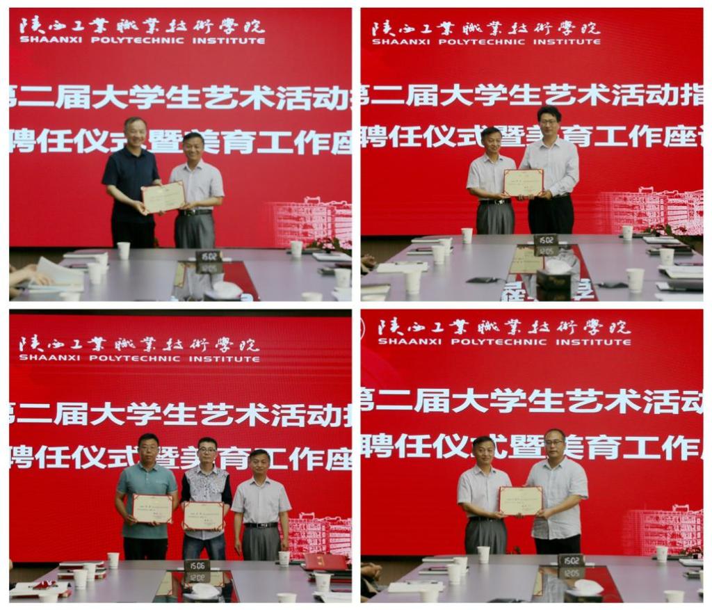 在美育部办公室主任毛建芳同志宣读《关于聘任陕西工业职业技术学院第二届大学生艺术活动指导团成员的通知》后,党委副书记贺天柱同志为大学生艺术活动指导团成员颁发聘书并讲话。贺天柱同志对上一届艺术活动指导团的工作给予了充分肯定,表示我校目前在美育工作上所取得的成绩,是集体智慧的结晶,也是各部门共同努力的结果。同时,也对艺术活动指导团今后的工作作出明确要求。艺术活动指导团各位成员要发挥艺术领域特长,走进学生群体,进一步加强我校艺术社团的建设与发展,让广大学生在我校美育工作中都能够受益,真正让学生在艺术实践中感受美、领悟美、热爱美;美育工作不仅要提高学生感知美、欣赏美的能力,更是促进学生健康成长的有效途径,要充分发挥美育和艺术教育在学生人格养成和心灵塑造上的作用,利用艺术社团活动来加强学生的心理健康教育,使其在艺术的滋养下健康成长;艺术活动指导团成员来源学校多个部门,指导团的成立是我校“三全育人”的重要举措,各位老师要在为学生艺术指导工作中,切实发挥育人作用,助力学生成长成才。