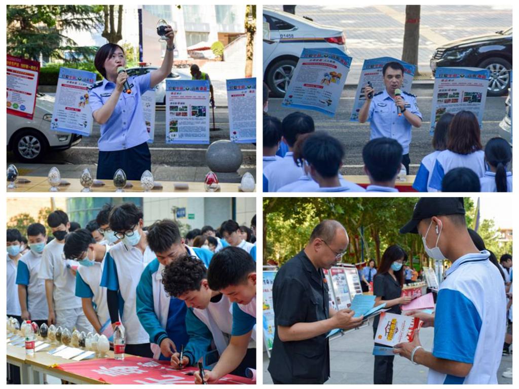 为进一步加强校园禁毒宣传,增强学生对毒品危害的认识,提高学生自觉抵制毒品的意识,为在校学生营造良好的成长环境。6月23日下午,在“国际禁毒日”来临之际,我校保卫处联合咸阳市公安局渭城分局、渭城区检察院、渭城区人民法院、文汇路派出所、文汇路街道办等各单位,在我校精艺楼前开展了“健康人生 绿色无毒”禁毒宣传进校园活动。