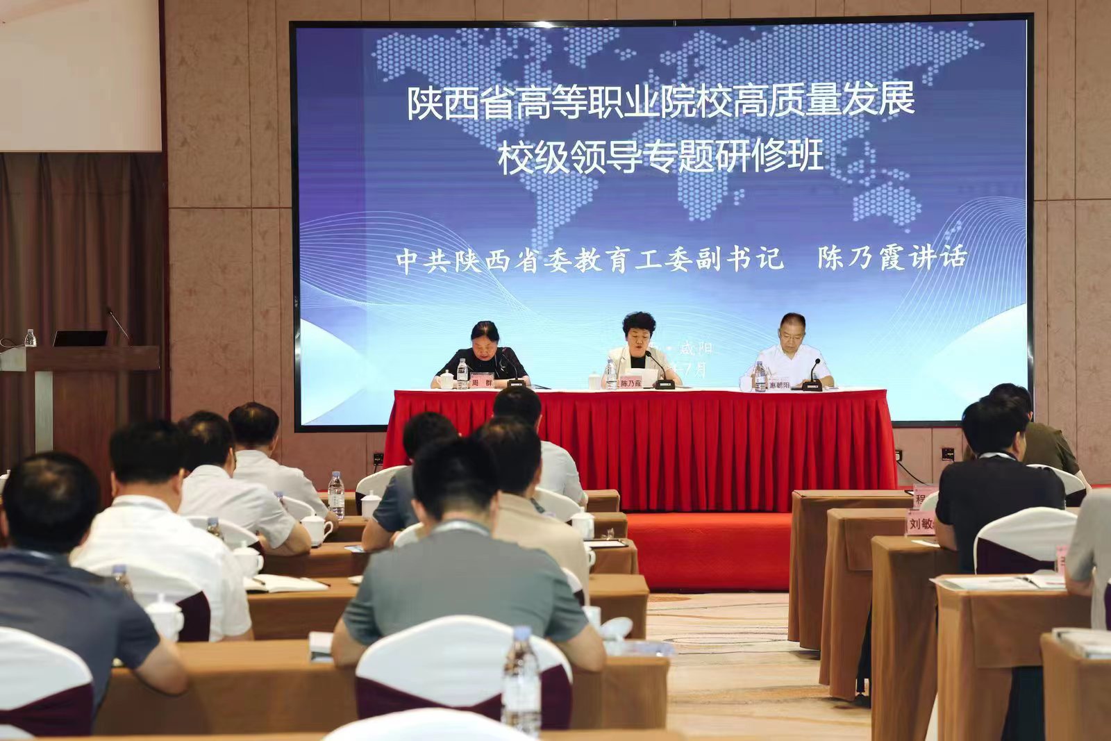 为推动我省高等职业教育高质量发展,全方位提升高等职业院校领导的管党治党和办学治校能力,7月25日,由陕西省委组织部主办、省委教育工委协办、我校承办的全省高等职业院校高质量发展校级领导专题研修班在咸阳正式开班。来自全省23所高职院校的38名党委书记、校长相聚大秦故都,进行为期5天的专题培训。陕西省委教育工委副书记陈乃霞出席开班典礼并讲话,省委组织部宣教干部处一级调研员周群主持典礼并全程跟班学习。