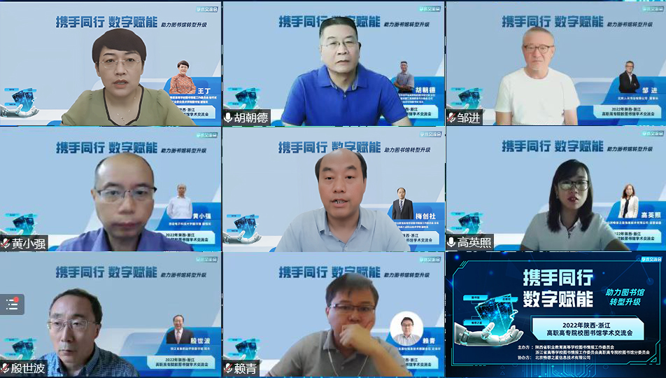 8月19日上午,由陕西省职业教育高等学校图书情报工作委员会、浙江省高等学校图书情报工作委员会高职高专院校图书馆分委员会共同主办,北京畅想之星信息技术有限公司协办的2022年陕西·浙江高职高专院校图书馆学术交流会在线上举行。