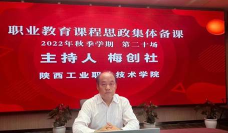 9月20日,由教育部职业教育与成人教育司指导,全国机械职业教育教学指导委员会、全国船舶工业职业教育教学指导委员会主办,我校与哈尔滨职业技术学院、重庆工商职业技术学院联合承办的“2022年全国职业院校装备制造大类课程思政集体备课会”在“智慧职教”平台举行。我校副校长梅创社在集体备课环节担任主持人。