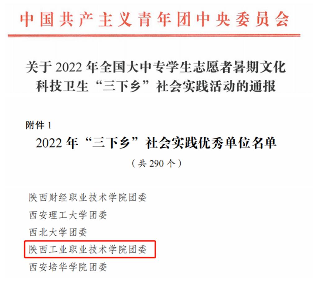 近日,共青团中央对2022年全国大中专学生志愿者暑期文化科技卫生“三下乡”社会实践活动表现突出的单位、团队、个人和成果进行通报。我校被评为2022年全国大中专学生志愿者暑期“三下乡”社会实践活动“优秀单位”,该荣誉我校首次获评,是共青团中央对于大学生社会实践工作授予基层组织的最高荣誉。