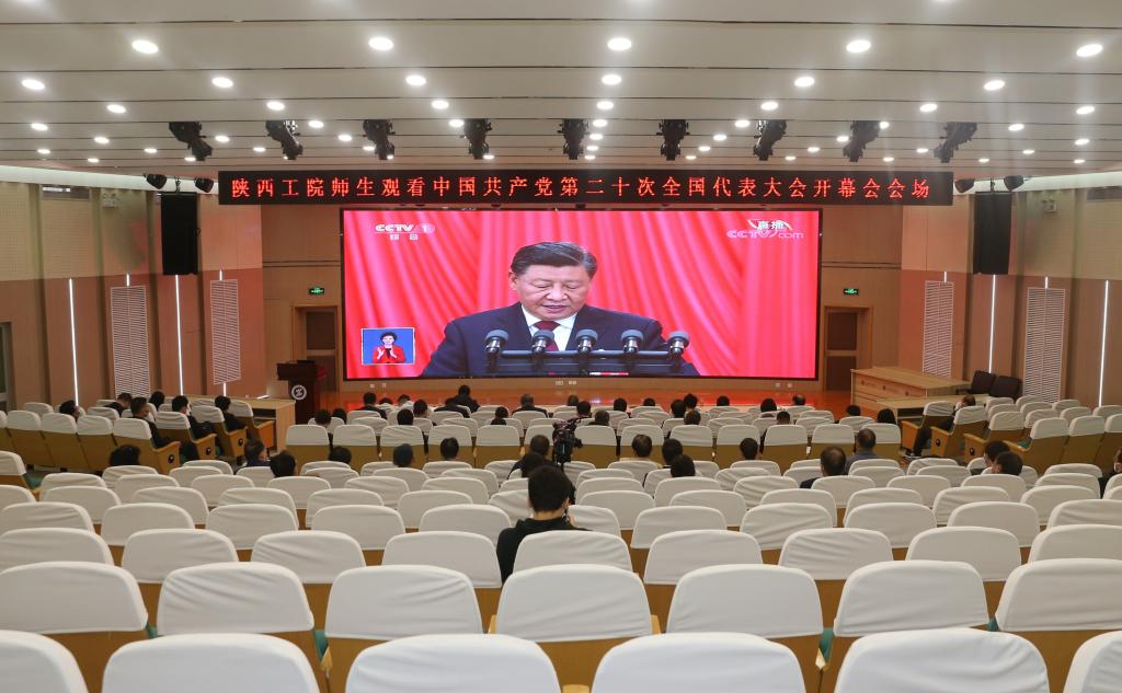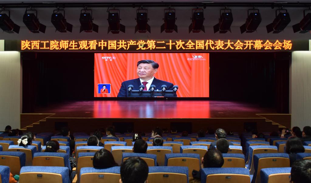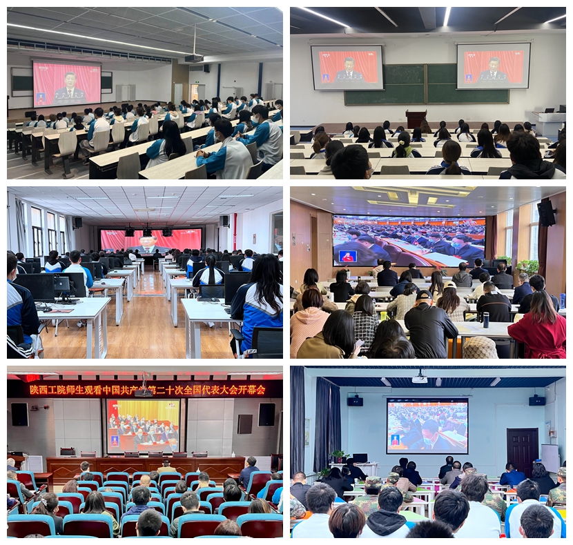 为全面学习、深刻领会党的二十大精神,扎实推进学校高质量发展,陕西工业职业技术学院在渭城、经开两校区设置9个会场,通过多种形式组织全校师生收听收看二十大开幕盛况,共同听报告,谈感受,诉心声。观看过程中,师生们边听边记,对报告中的新判断、新提法、新概念纷纷点赞,报以热烈的掌声。