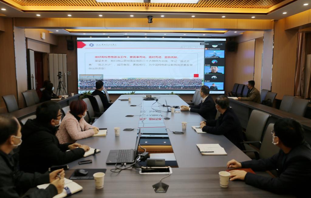 党委书记惠朝阳以“善用培元铸魂大思政 做好立德树人大文章”为题作会议交流发言。惠书记通过构建“大格局”思政,塑优机制增力度;推进“大课堂”建设,筑优课程提效度;完善“大先生”队伍,培优力量拓广度;搭建“大资源”平台,创优文化升温度等四个维度对我校在学习贯彻二十大精神,落实立德树人根本任务,开展思政教育全面育人方面所开展的工作进行了深入交流。全国职教专家董刚教授对汇报内容给予了高度评价,肯定了我校在国家“双高”建设中,开展思想政治教育工作所取得的显著成效,提出了推进思政育人工作的中肯建议。