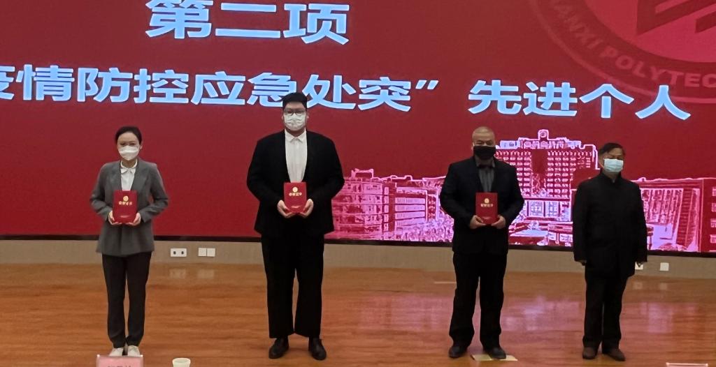 会上,学工部副部长兼学生处副处长杨修国从“学生工作取得的成绩、所做的主要工作、存在的不足、下一步打算”四个方面报告了三年来的学生工作开展情况;接着,贺书记为获得“疫情防控应急处突先进个人”的财经与旅游学院李引鹏、信息工程学院王婉星、李本、学生处顾灵达、保卫处刘问航5人颁发了荣誉证书;信息工程学院班主任代表王婉星、辅导员代表杨阳、航空工程学院学工办主任张旭依次进行了交流发言。