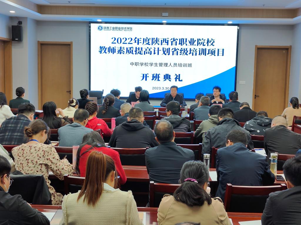 为深入贯彻落实党的二十大和全国职业教育大会精神,进一步促进中职学校落实立德树人根本任务、规范办学行为、深化教育教学改革、提高人才培养质量。3月30日,陕西省2022年度职业院校教师素质提高计划中职学校学生管理人员培训班开班典礼在我校经开校区举行,来自全省61名中职学校学生管理人员参加。继续教育与培训学院院长乌军锋、学生处处长郝军出席,继续教育与培训学院副院长贾严鹏主持开班典礼。
