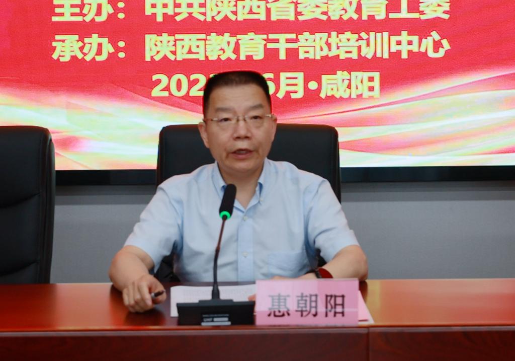 开班典礼上,陕西工业职业技术学院党委书记惠朝阳首先向参加本次培训的各位学员表示热烈的欢迎,向长期以来支持陕西工院事业发展的省委教育工委和各兄弟院校致以衷心的感谢。他指出,党的十八大以来,以习近平同志为核心的党中央高度重视发展现代职业教育,把职业教育摆在了前所未有的突出位置。上个月,习近平总书记在听取省委和省政府工作汇报时强调:“陕西在推进中国式现代化建设中要有勇立潮头、争当时代弄潮儿的志向和气魄,奋力追赶、敢于超越,在西部地区发挥示范作用”,这是对陕西发展的殷切期望。作为陕西高职院校,我们要响应号召,认真领会,切实贯彻,走在前面,干在实处,在新时代职业教育改革发展大潮中,展现新作为、做出新贡献。最后,他表示省委教育工委将这次培训任务交给我校来承办,是对我们办学特色和办学实力的充分肯定,作为培训承办校,我们将竭尽所能,做好培训各项任务和服务工作。