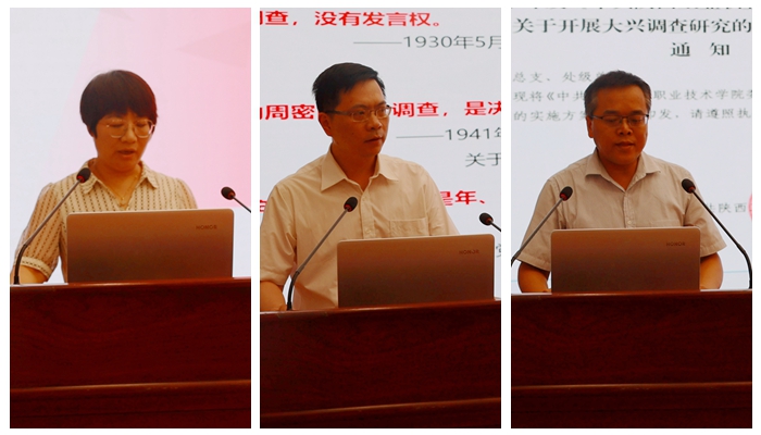 马院总支副书记王艳、发展规划处副处长何奇彦、科研处处长刘引涛分享调研成果