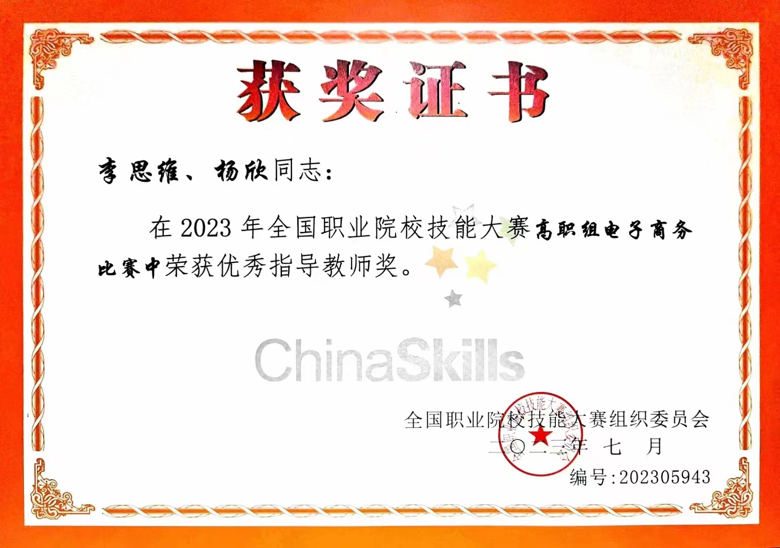 7月25日-26日,2023年全国职业院校技能大赛高职组“电子商务”赛项在广东科学技术职业学院举行,来自全国各省市自治区直辖市的74支队伍参加。我校商贸与流通学院李思维、杨欣两位教师指导的电商2002孟龙、电商2101王一一、电商2102帖秋平和电商2102孟庆燚四位同学组成的代表队,荣获国赛团体一等奖,李思维和杨欣两位老师获评优秀指导教师。