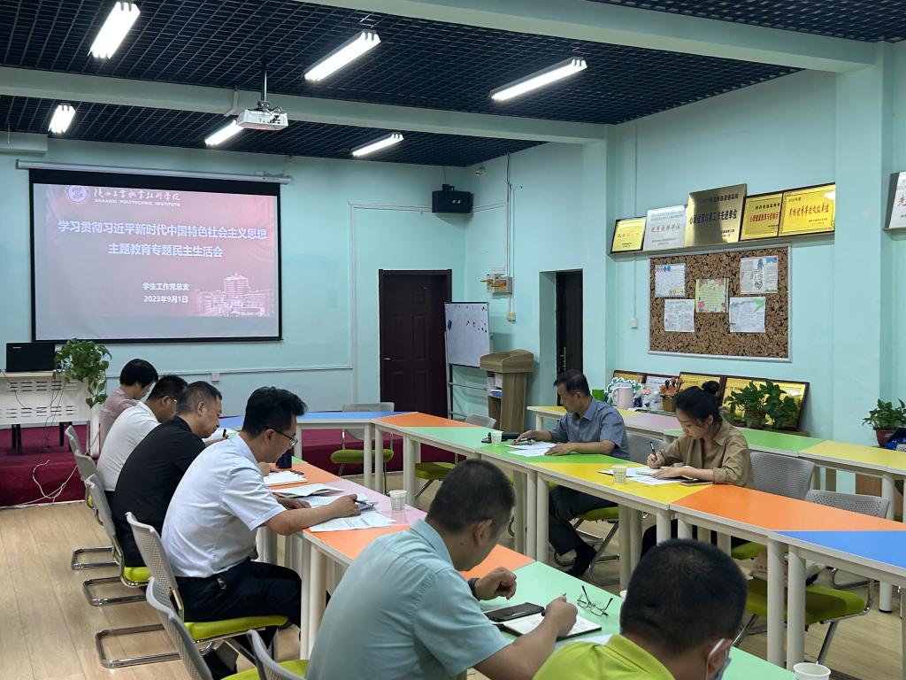 9月1号下午,学生工作党总支在格物楼大学生思想政治教育温馨港召开学习贯彻习近平新时代中国特色社会主义思想主题教育专题民主生活会,学院党委副书记贺天柱和组织部相关人员到会督导。学生工作党总支委员及全体处级干部参加了会议,会议由学生工作党总支书记郝军主持。
