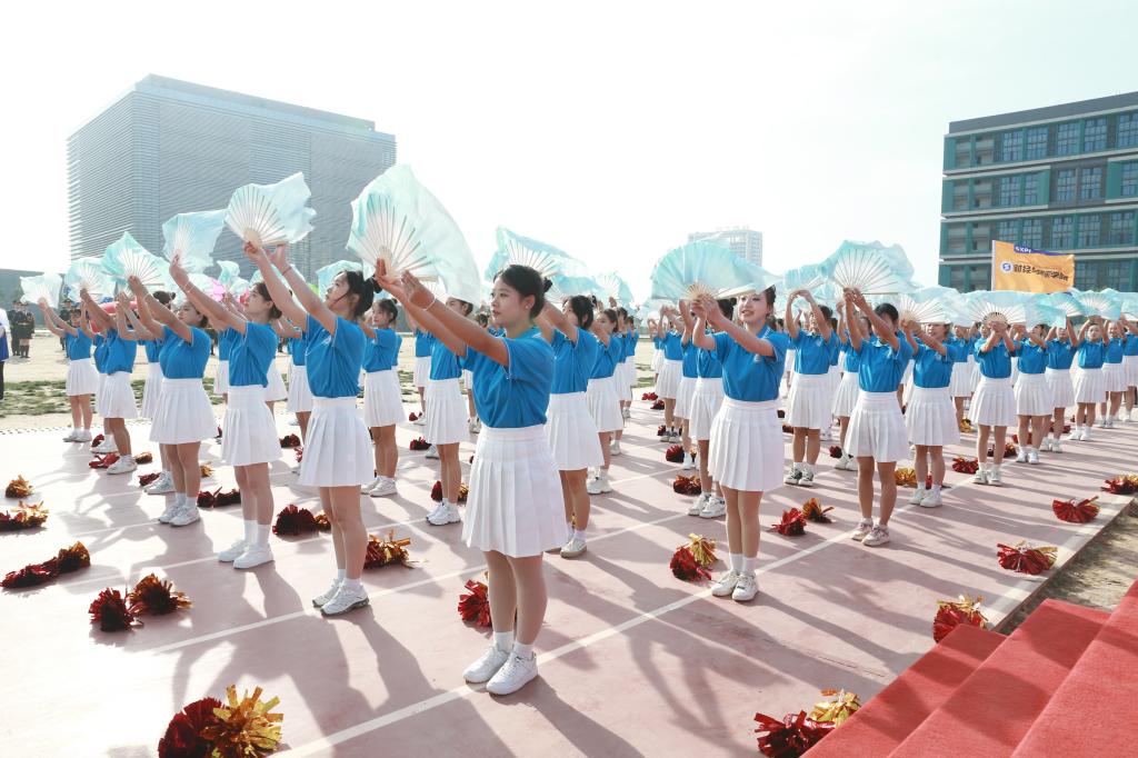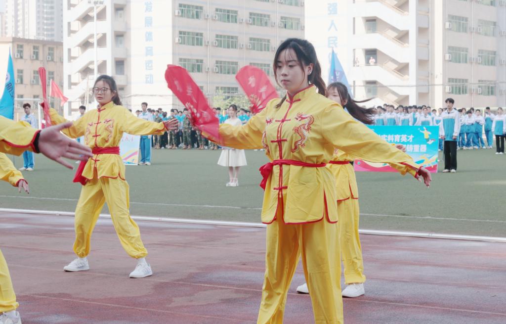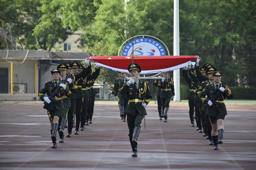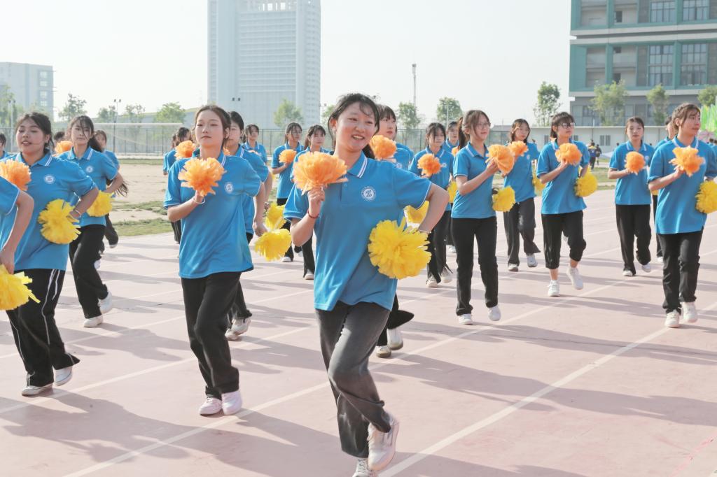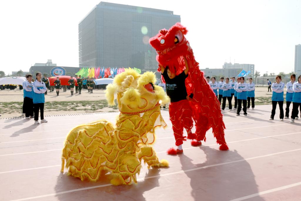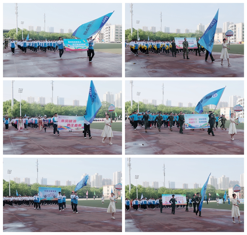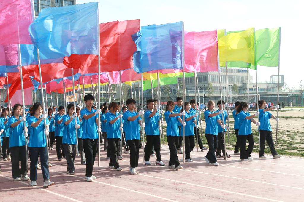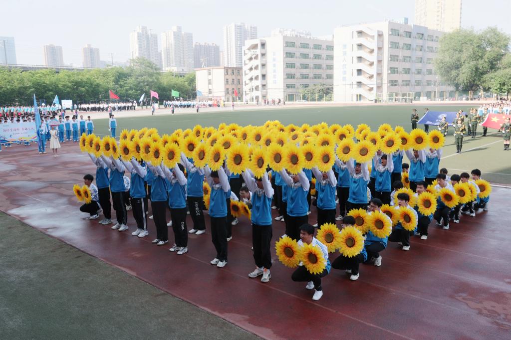 沐着骄阳,红旗迎风招展,国旗方队、彩旗方阵、花束方阵、裁判员方阵、运动员方阵步履铿锵。来自不同院系的19个方阵各出新意、各展风采,用响亮的口号与精心设计的表演诉说着对这场体育盛会的期待与热爱。电气工程学院学子用多彩的花束变幻出“我爱电气”“SXPI”的队形,生动诠释了“把最美的鲜花送给最可爱的人”;航空工程学院师生将舞蹈与武术相结合,通过美感与力量,展现出体育健儿的潇洒与激昂;机械工程学院师生整齐划一,他们高喊“知机识变,利械报国”的口号,展现了工院机械人在新时代潮头奋发向上的精神面貌;财经与旅游学院用活力十足的舞蹈串烧,为开幕式带来一道靓丽的彩虹……