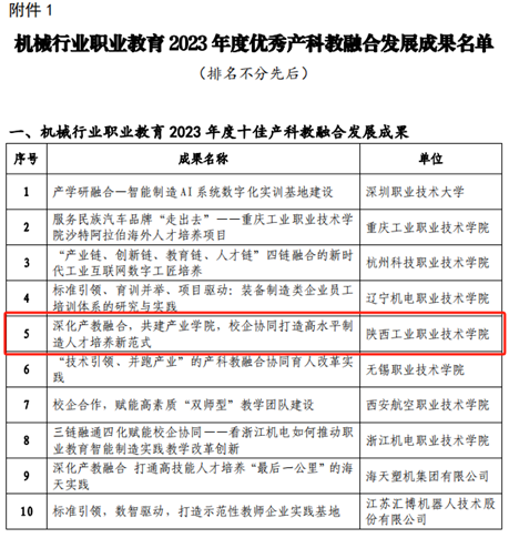 3月27日,机械工业教育发展中心公布了2023年度产科教融合发展成果和产学研合作项目评选结果名单,全国职业院校和相关企业提交的产教融合成果、案例和项目共计219篇,经专家评审,机械工程学院报送的《深化产教融合,共建产业学院,校企协同打造高水平制造人才培养新范式》、《接本地化人才培养需求,探索制造类专业海外办学新模式》和《机械制造及自动化专业校企双元育人项目》分别被评为2023年度十佳产科教融合发展成果、2023年度优秀产科教融合发展成果和2023年度优秀产学研合作项目。