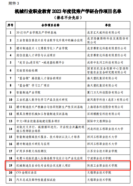 我校多项成果成功入选机械工业教育发展中心2023年度优秀产科教融合发展成果和优秀产学研合作项目