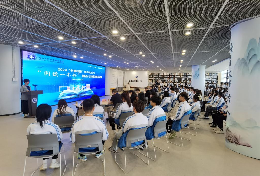下午4时许,2024年“同读一本书”阅读马拉松(线下)挑战赛交流与颁奖活动在图文信息中心“工院记忆”研习空间举行,同期举行了“咸阳图书馆与陕西工业职业技术学院图书馆”合作共建签约仪式。咸阳图书馆馆长杨岳、阅读推广部主任薛静,我校副校长梅创社、工会主席张彬、公共课教学部部长赵娇、学生处副处长刘冽、信息工程学院桓美丽、图书馆馆长王丁、图管会师生代表、参赛学生共同参加了此次活动,活动由副馆长王艳主持。