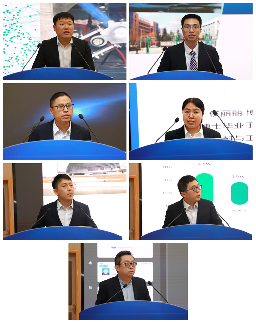 最后,机械工程学院陈朋威、机械工程学院穆龙涛、材料工程学院徐广胜、材料工程学院侯丽丽、航空工程学院王伟、航空工程学院赵伟博、化工与纺织服装学院程序7位老师依次上台对研发成果进行推广宣介。