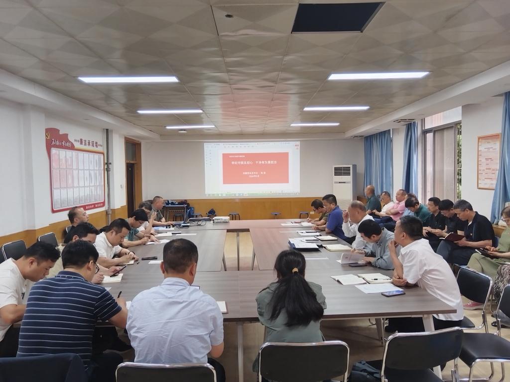 5月29日下午,后勤党总支在渭城校区格物楼二楼党员活动室召开全体党员大会,推进党纪学习教育工作,党委委员、副院长刘清参加会议并讲话。