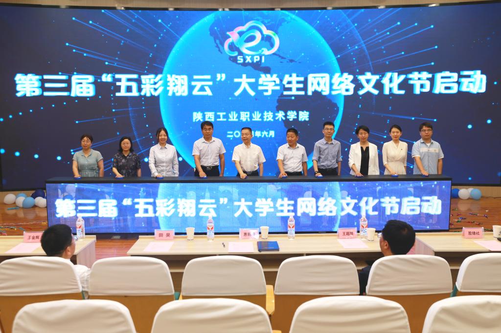 6月13日下午,我校第三届“五彩翔云”大学生网络文化节在学术会堂拉开帷幕。党委书记惠朝阳,党委副书记田昊,组织部部长王超联,宣传部部长王金辉,教师工作部部长、人事处处长殷锋社以及9个赛项的承办部门负责人、获奖师生代表,双校区800名师生代表参加了开幕式。