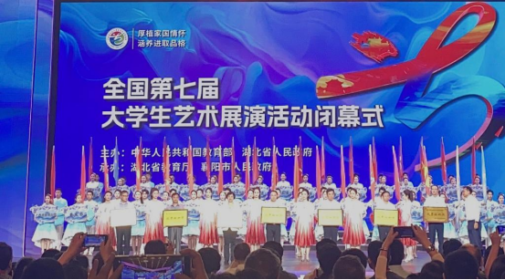 6月12日—18日,以“厚植家国情怀 涵养进取品格”为主题的全国第七届大学生艺术展演活动在湖北襄阳圆满举办。我校荣获一等奖2项、优秀创作奖、优秀组织奖等4个奖项。本届展演我校取得了新的突破,首次参加了开幕式演出,作为高职院校代表在闭幕式登台领奖。我校已连续七届在全国大艺展中斩获奖项,连续三届蝉联艺术表演类全国一等奖,连续两届蝉联美育改革创新优秀案例全国一等奖。