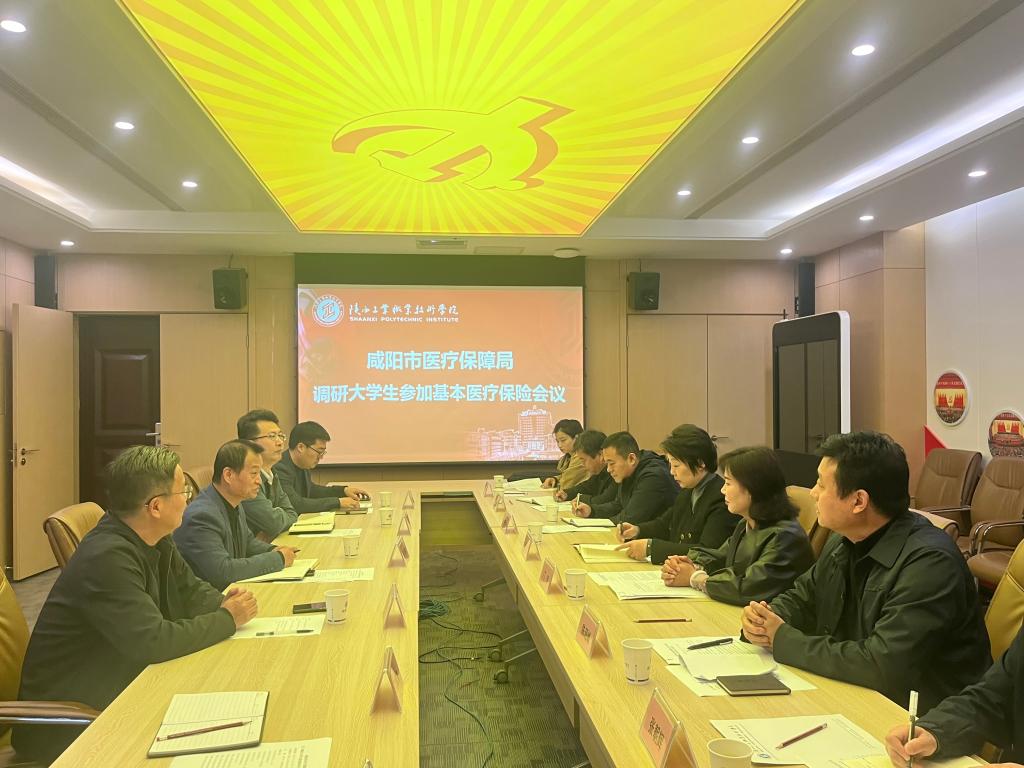 10月30日上午,咸阳市医疗保障局党组书记、局长邵红一行来我校调研大学生基本医疗保险参保工作。学院党委副书记贺天柱、学生工作部(处)长郝军、渭城区政府副区长门琼、渭城区医疗保障局和学院负责学生医保工作相关人员参加了座谈会。座谈会由后勤保障处处长乌军锋主持。