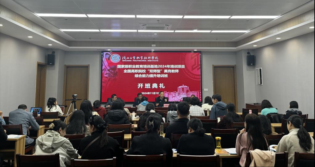 11月19日上午,2024年全国高职院校“双师型”美育教师综合能力提升培训开班典礼在我校经开校区启新楼举行。学校党委副书记贺天柱,继续教育与培训学院院长闫军,美育部部长付胜利和培训管理人员、全体参训学员40余人参加了开班典礼。典礼由继续教育与培训学院院长闫军主持。