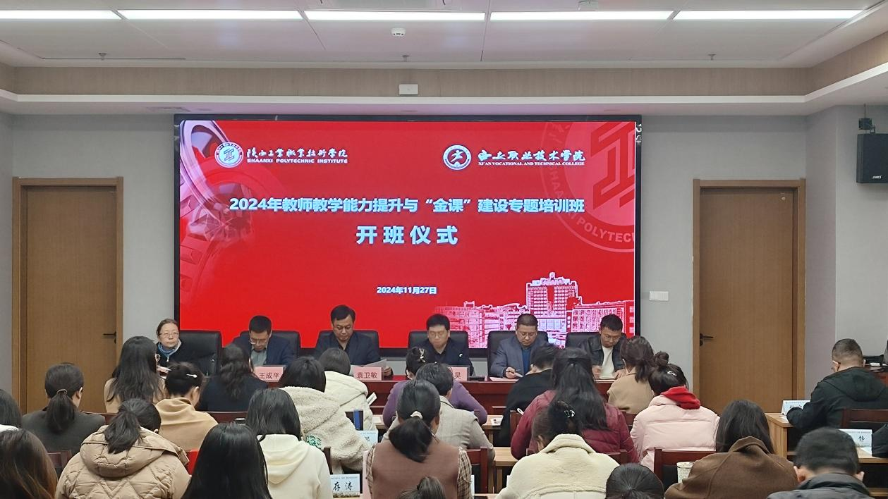 11月27日上午,2024年教师教学能力提升与“金课”建设专题培训班开班仪式在我校经开校区启新楼举行。西安职业技术学院副校长袁卫敏,教务处处长王成平,人事处副处长郑娜,我校党委副书记田昊,继续教育与培训学院院长闫军,商贸与流通学院院长张光以及全体参训学员40余人参加了开班典礼。典礼由闫军院长主持。