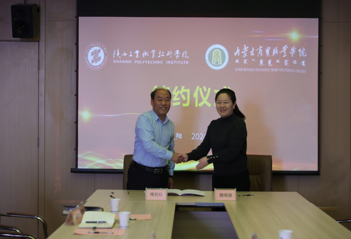 会上,副院长梅创社首先对魏晓颖副院长一行的来访表示欢迎,在观看完学校宣传片《红色匠心》后,梅创社副院长从我校发展历程、人才培养、师资队伍建设、科研工作等方面对学校的基本情况做了详细介绍。内蒙古商贸职业学院魏晓颖副院长对我校发展历程与近年来取得的办学成绩给予了高度赞赏,并简要介绍了内蒙古商贸职业学院办学历史及发展现状。接着,梅创社副院长和魏晓颖副院长签署了两校《合作框架协议》,两校将在教育教学改革、人才培养、师资队伍建设、科学研究等方面加强交流合作,相互促进,共同发展。随后,双方相关对口部门就师资队伍建设、教学改革、成果转化等方面进行了深入交流。