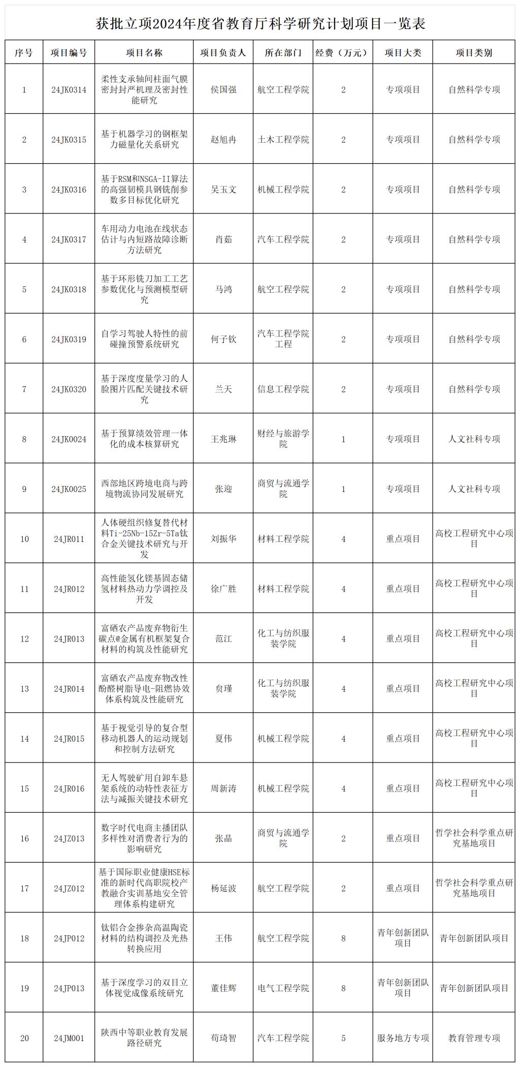 近日,接《陕西省教育厅关于下达2024年度科研计划项的通知》(陕教函〔2025〕96号),我校推荐申报的23项科研项目,获批立项20项,是我校获批立项项目类别和立项项目数量最多的一次,其中自然科学专项7项,人文社科专项2项,高校工程研究中心项目6项,哲社重点研究基地项目2项,青年创新团队项目2项,教育管理专项项目1项,共获批经费65万元。