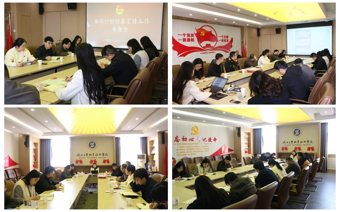 为深入学习贯彻习近平总书记关于青年工作的重要思想和习近平总书记在新时代推动西部大开发座谈会上和在重庆考察时的重要讲话精神,认真落实团中央大学生志愿服务西部计划全国视频调度会会议精神和陕西省西部计划项目办大学生志愿服务西部计划招募宣传工作专项部署会会议精神,持续动员广大优秀学子踊跃参加西部计划,以实际行动为奋力谱写西部大开发新篇章贡献青春力量。3月21日上午,校团委在崇文楼十楼第三会议室召开西部计划招募宣传工作专题会。会议由校团委书记薛媚主持,各二级学院团总支书记、负责西部计划工作的专职教师团干部参加会议。