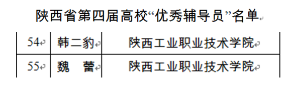 近日,省委高教工委下发文件(陕高教生〔2018〕8号),对陕西省第四届高校十佳辅导员、十佳辅导员提名奖和优秀辅导员进行通报表彰,我院辅导员韩二豹、魏蕾同志荣获“陕西省第四届高校优秀辅导员”称号。