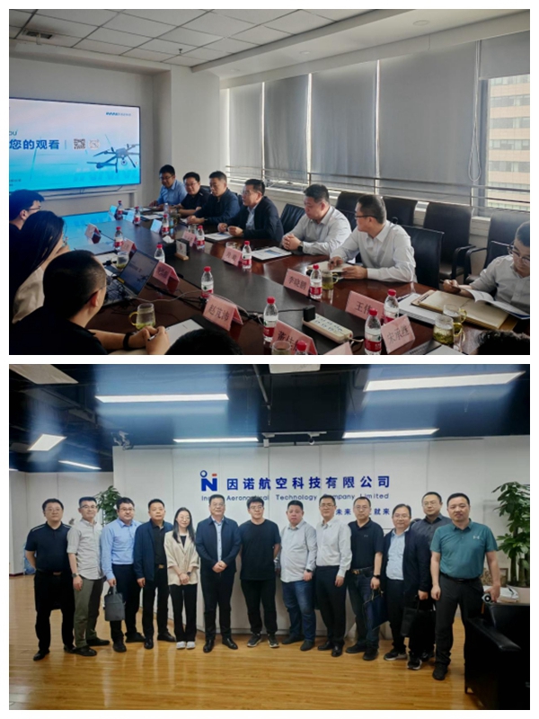 西安因诺航空科技有限公司负责人王鹏及各部门负责人对刘永亮校长来访调研表示热烈欢迎。王鹏从公司发展、企业荣誉、业务版图、低空经济应用等方面详细介绍了公司情况。刘永亮校长对公司的欢迎和接待表示感谢,并从产教融合、校企合作、学校发展、专业建设、学生就业等方面详细介绍了学校情况。校企双方就党建工作、人才培养、科技创新、实训基地建设、社会培训等方面进行了讨论,并达成合作意向和共识。