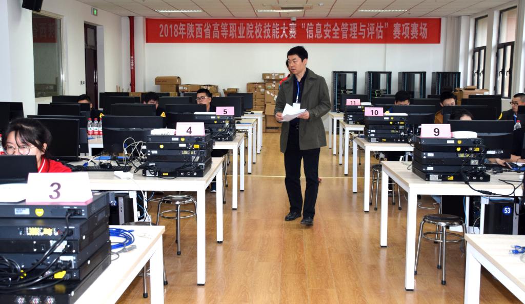 3月31日,2018年陕西省高等职业院校技能大赛“信息安全管理与评估”赛项比赛在我院精艺楼举行。本次比赛由陕西省教育厅主办,我院承办,神舟数码云科信息技术有限公司技术支持。来自杨凌职业技术学院、陕西职业技术学院、国防工业职业技术学院及我院等16所高职院校20支队参加比赛。