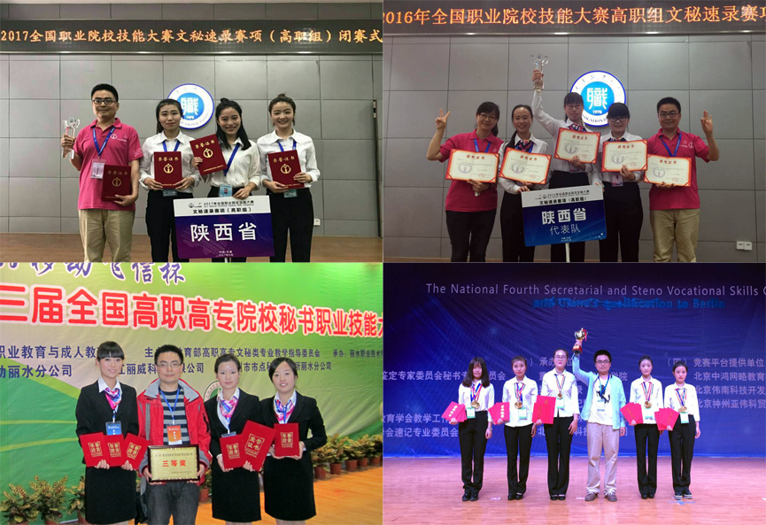 功夫不负有心人,经过师生一年的努力,4名同学参加2015年国赛,获得了团体三等奖,实现了我院乃至全省在文秘速录赛项上的首次突破。2016年有一举荣获国赛团体一等奖,实现了整个西部地区高职院校文秘速录赛项的历史性突破。