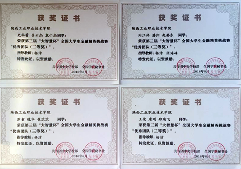 近日,由共青团中央学校部、全国学联秘书处主办的第三届“大智慧杯”全国大学生金融精英挑战赛圆满结束,来自全国近百所高校的上万名学生参加为期3个多月的比赛。经过预赛、省赛和国赛的层层选拔,我院史华蕾、吕云杰、袁仁杰等12名同学,在工商学院教师杨洁、张海峰的指导下,取得优秀团队二等奖1项、三等奖3项的好成绩。