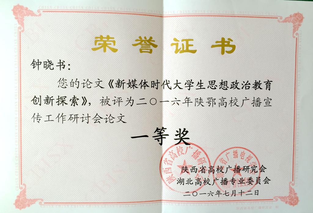 7月11日,由陕西省高校广播研究会主办的2016年陕鄂高校广播宣传工作研讨会在延安举行。我院广播台获“陕西省高校优秀广播台”称号,广播台指导老师钟晓书撰写的论文《新媒体时代大学生思想政治教育创新探索》荣获一等奖并进行了大会交流。