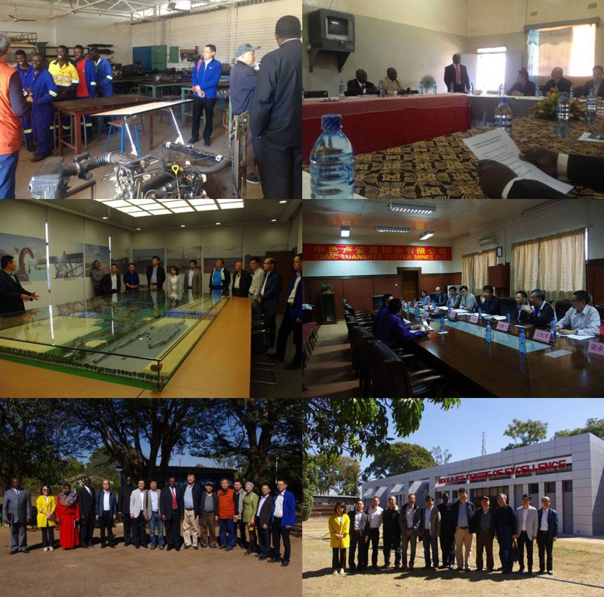 调研组主要调研了中色卢安夏铜业有限公司、赞比亚中国经济贸易合作区、中色非洲矿业(谦比希矿)公司、火法冶炼厂(CCS)、湿法生产厂、中色矿业卢萨卡园区等6家企业,参观了中色卢安夏铜业有限公司露天矿、尾矿、湿法生产厂,参观了中赞友谊医院,火法冶炼厂、谦比希矿、湿法生产厂、经济贸易合作区、吉海农食用茵工厂、赞比西洒业有限公司等企业,调研和参观了相关的6所技能与培训学校,并与我国驻赞使馆陈代办、孔子学院李院长、商务部代表及新华社驻赞新闻媒体代表进行了座谈。